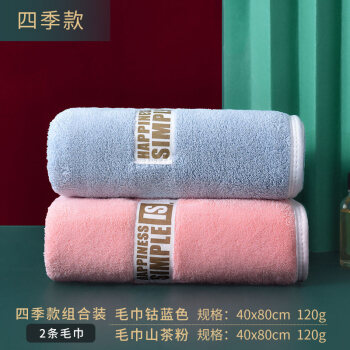 綿糸布タオル全綿吸水洗顔タオル男女兼用四つ葉大タオル青+ピンク2本入り34 cm*72 cm