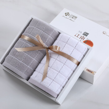 清潔感あふれるオルゴールギフトボックス純コットン柔軟吸水大タオルセットビジネス従業員福祉プレゼントオーダーメイド会社年会手提げ袋6689白+灰