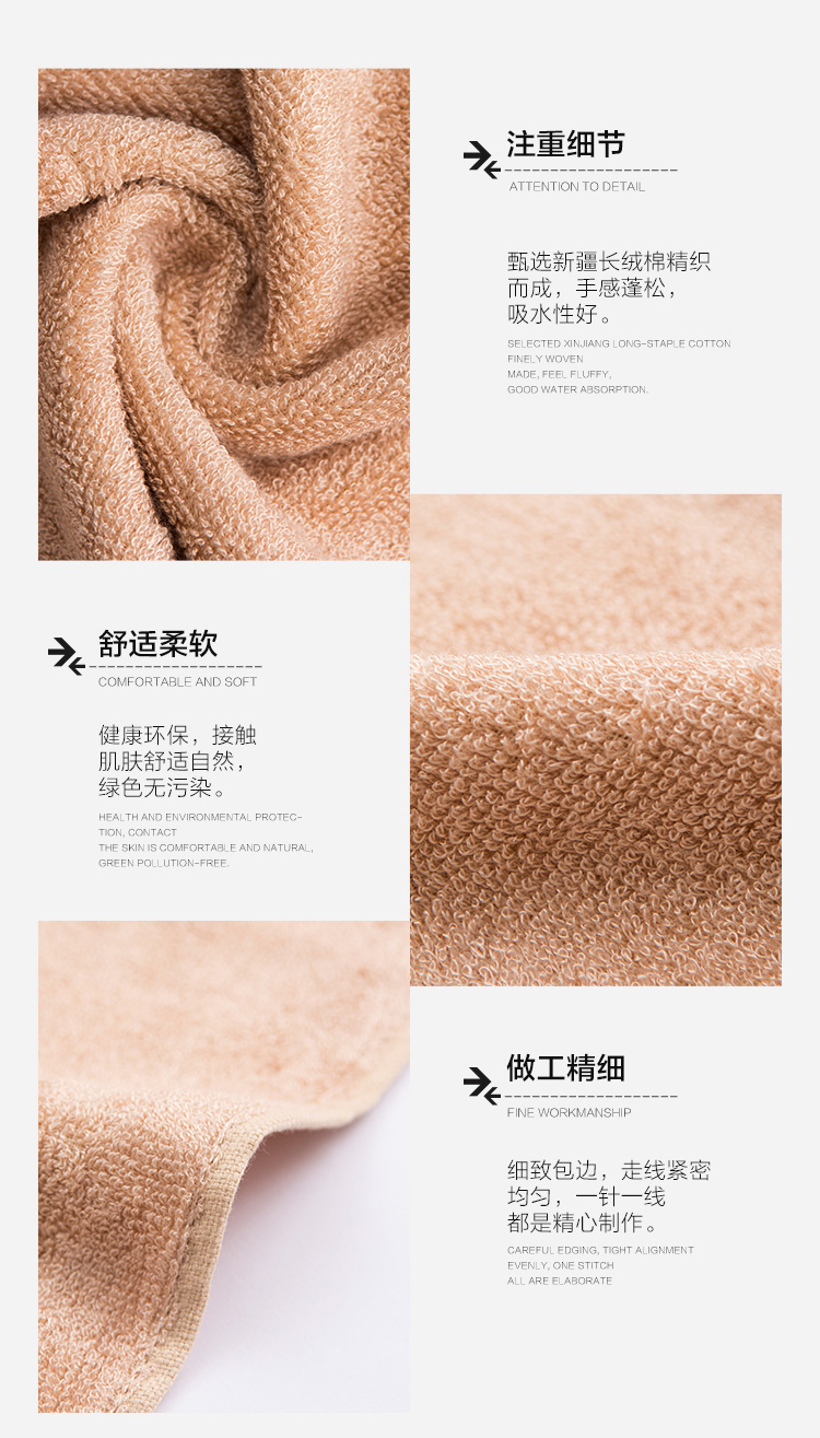三利タオルの家庭用紡績綿の無地タオル3枚に33×73 cmのソフトな吸水性洗顔用タオルを1枚ずつ包装しています。